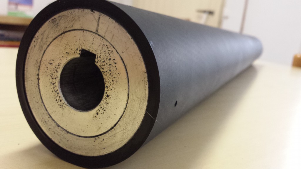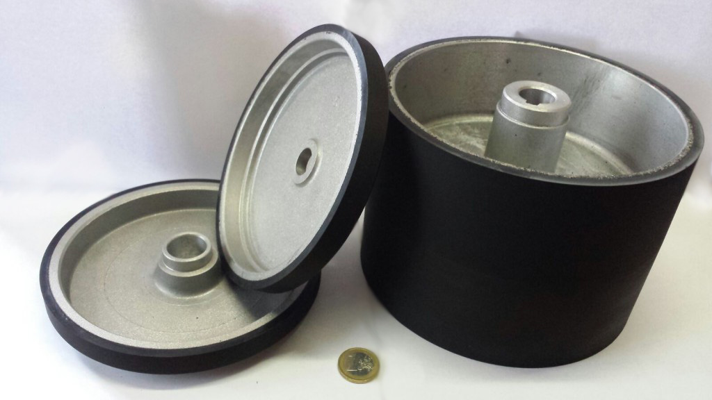 Per i rulli abbiamo diverse soluzioni tecniche da poter utilizzare: possiamo fare la vulcanizzazione in pressa e successivamente la rettifica, oppure possiamo calzare tubi con diametro inferiore di 3/4 mm rispetto all'inserto metallico, anche qui con successiva rettifica e possibilità di realizzare rulli anche di lunghezze importanti.